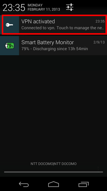 indication area of Android will show "VPN activated"