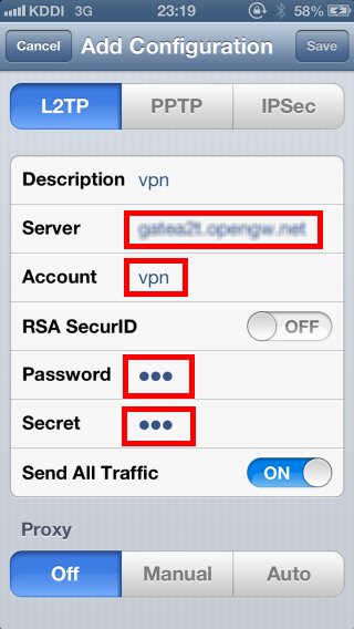 - Username, password and pre-shared key are all "vpn"